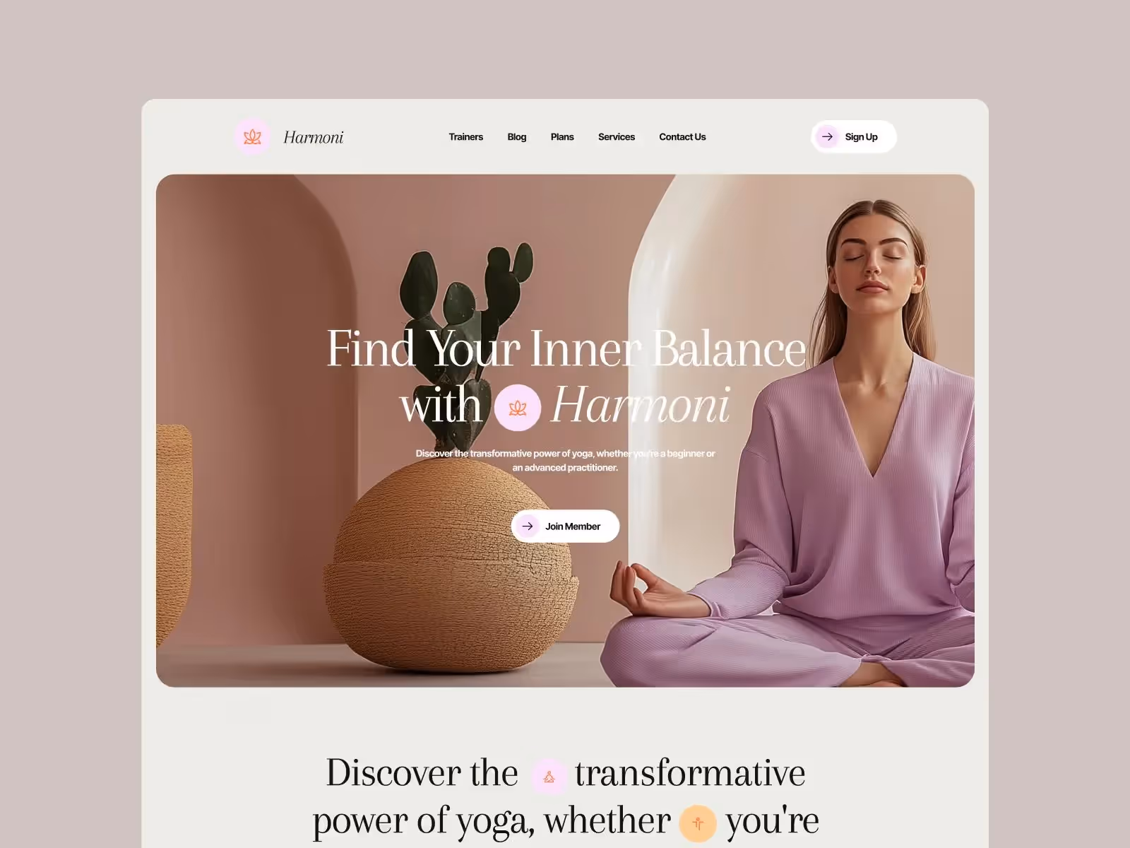 O Harmony é altamente personalizável, com seções editáveis e um arquivo Figma incluído. Se você quiser mostrar horários de ioga, programas de bem-estar ou serviços de treinamento, você pode personalizar cada elemento para se alinhar ao seu estilo de treinamento e identidade de marca exclusivos.