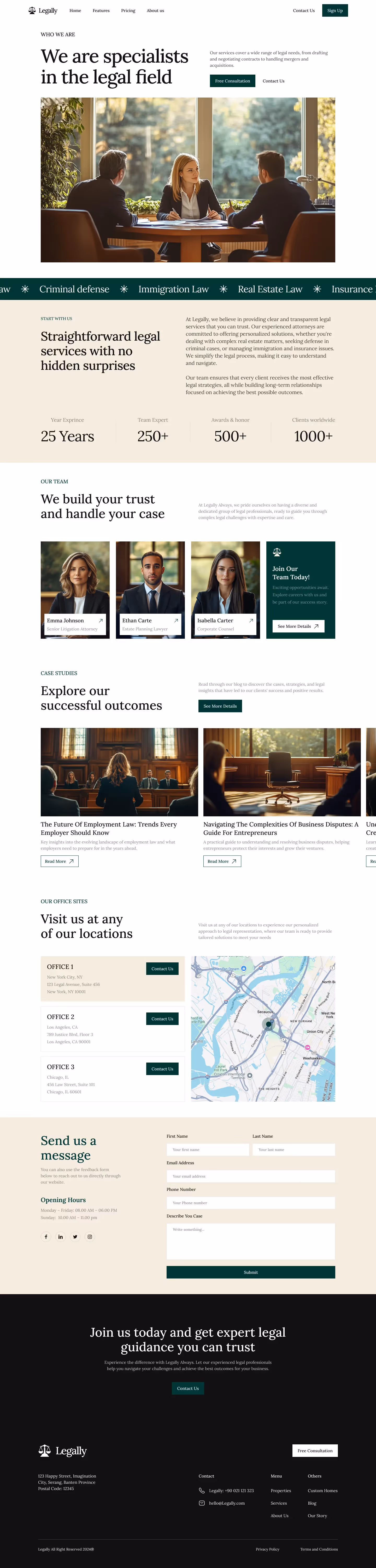 With a clean and sleek design, Legally includes editable sections to highlight a wide range of services, case studies, or practice areas. Whether you’re promoting family law, corporate legal services, or real estate expertise, this template provides the tools you need to effectively communicate your value and attract potential clients.