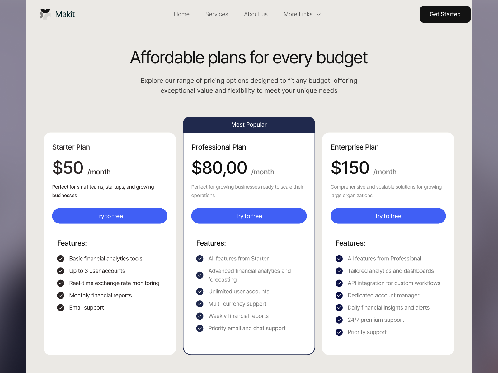 Pricing Cards