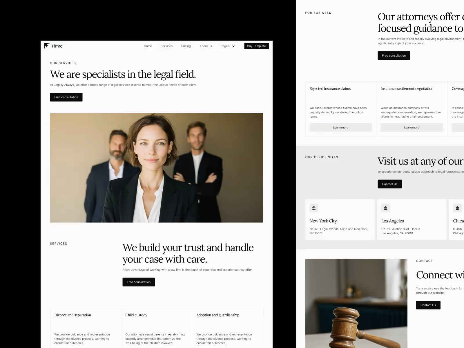 Firmo ist eine Webflow-Vorlage, die speziell für Anwälte und Anwaltskanzleien entwickelt wurde, die ihre Dienstleistungen professionell und modern präsentieren möchten. Perfekt für Anwaltskanzleien, Anwälte und Beratungsunternehmen Firmo bietet eine flexible und anpassbare Struktur, mit der Sie alle Komponenten einfach an die individuellen Bedürfnisse Ihres Unternehmens anpassen können.