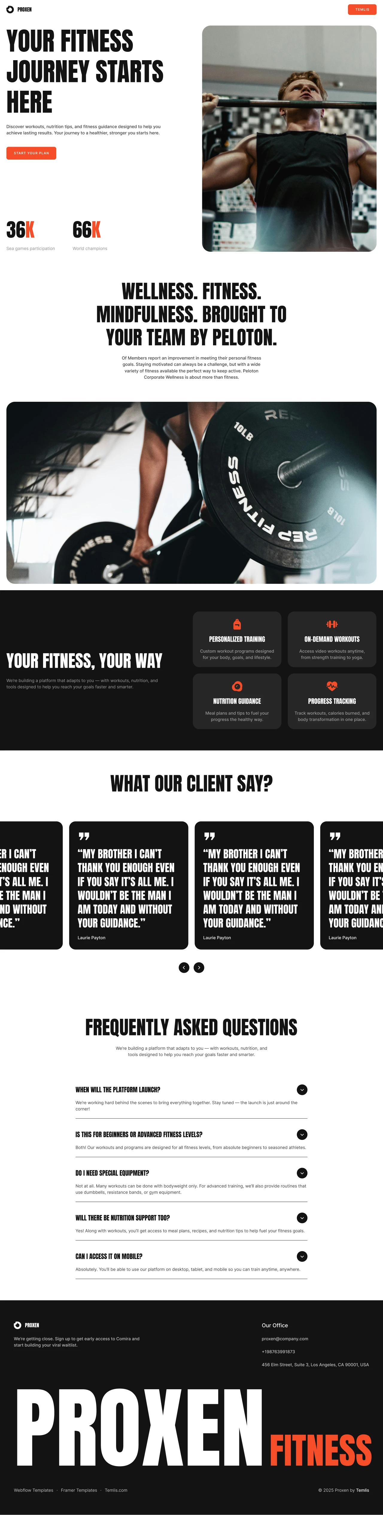 Built to be fully responsive and easy to customize in Framer, Proxen makes it simple to capture leads and build momentum. Whether you’re launching a fitness app, wellness platform, or health startup, Proxen helps you grow your community and create pre-launch excitement.