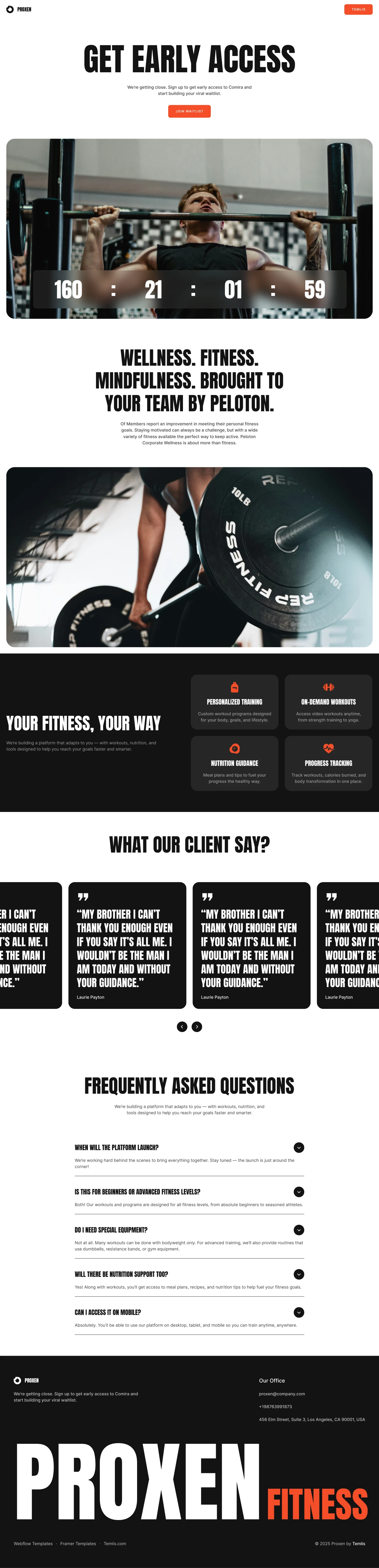 Proxen is a premium Framer template crafted for fitness startups and wellness companies to launch an effective waitlist page. It comes with one landing page featuring two hero variations, designed to fit different brand tones and goals.