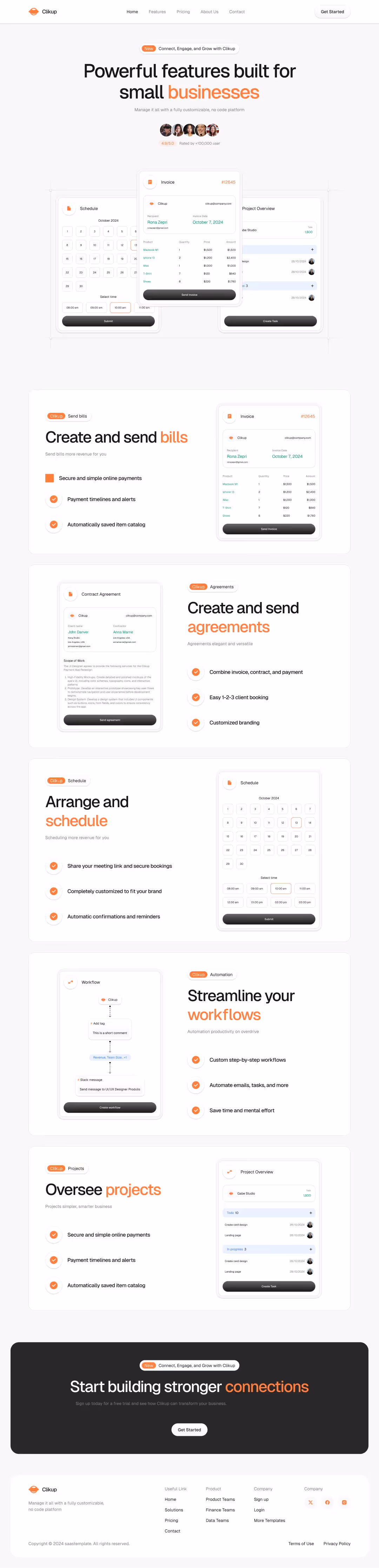 With a clean and sleek design, Clikup includes editable sections that can be used to highlight a wide range of services or products. Whether you’re promoting a software platform, tech services, or cloud-based solutions, this template provides the tools you need to effectively communicate your company’s value and attract potential clients.