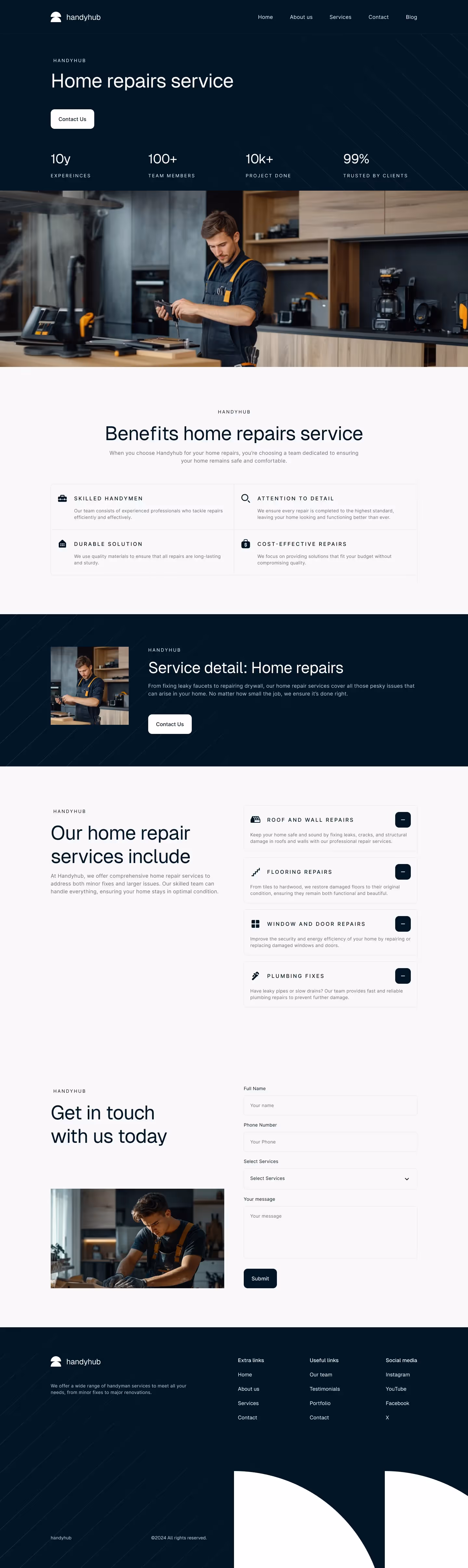 Handyhub is a Webflow template specifically designed for service-based businesses looking to establish a professional and trustworthy online presence. Perfect for home service providers, cleaning businesses, maintenance companies, and similar industries, Handyhub offers a flexible and customizable structure, allowing you to adapt all components to suit your business needs.