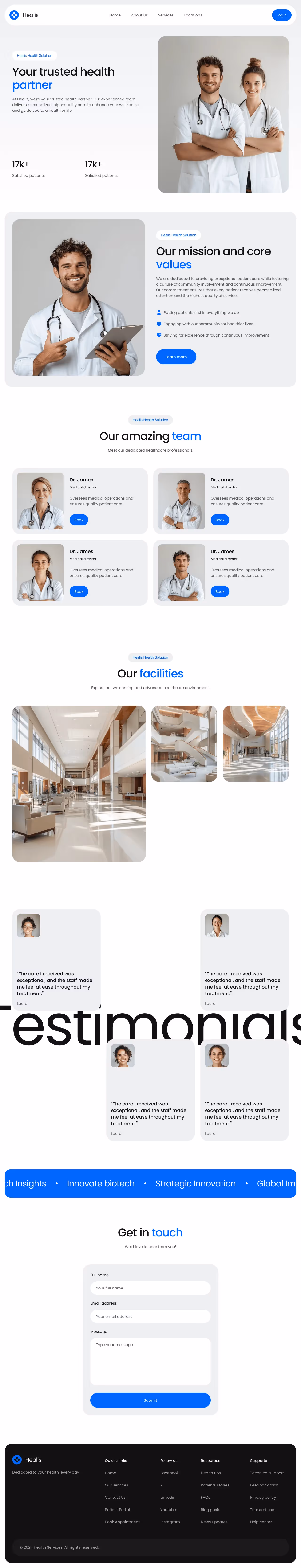 With a clean and elegant design, Healis includes editable sections to highlight medical services, specialties, patient testimonials, and health-related resources. Whether you’re offering general practice, specialized care, or wellness programs, this template provides the tools you need to effectively communicate your value and attract new patients.